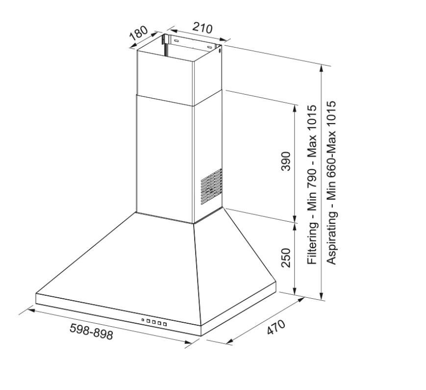 • Duvar tipi davlumbaz 60 cm