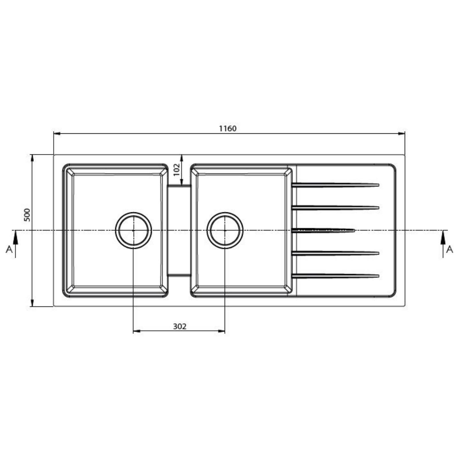 Real Stone P021 Esila Çift Gözlü Granit Mutfak Eviyesi Siyah 116.5 x 50 Cm