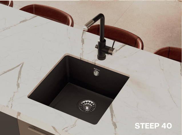 Real Stone Steep 40×40 Siyah Granit Mutfak Eviyesi