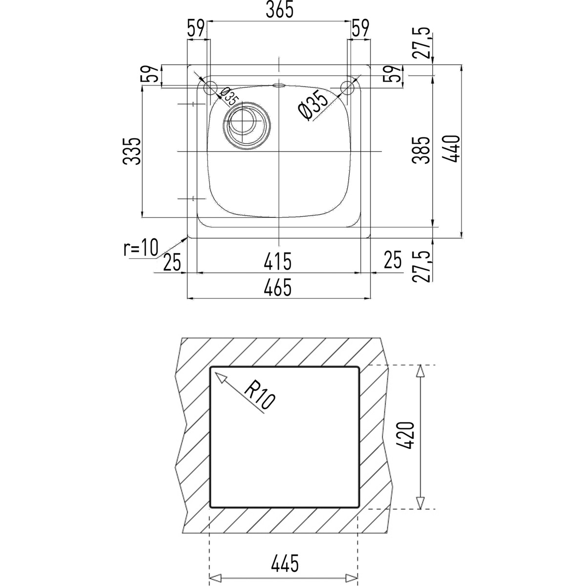 - 150mm hazne derinliği