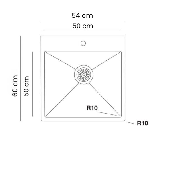 Livinox 50×50 Aynalı Tek Gözlü Pollisajlı Tezgah Üstü Paslanmaz Çelik Eviye